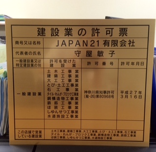 神奈川県の建設業許可申請は、清水さんをお勧めします!業種追加・決算変更届も清水さんのところにお願いしています。許可票の種類が18もあり、最初見本を見たときは驚きました!