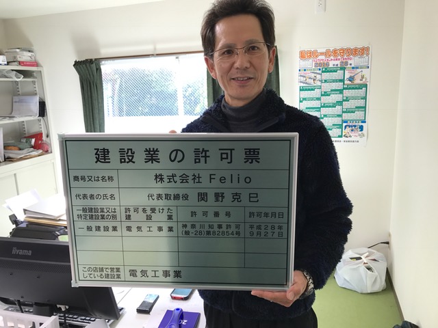 <取得業種:電気工事業、電気通信工事業 計2業種 平成28年4月19日取得>